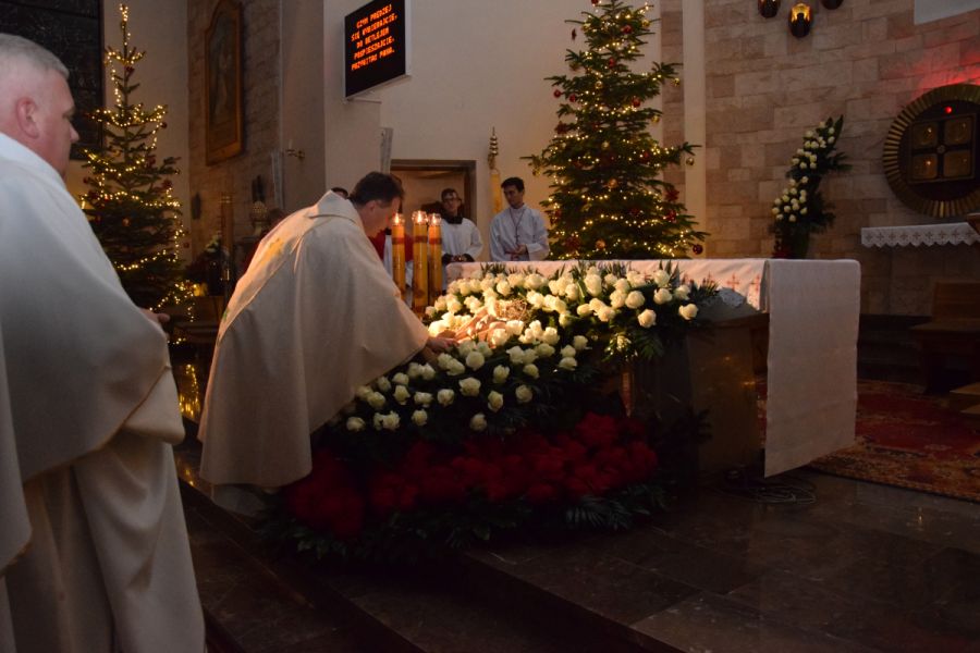 Pasterka rozpoczęła się od uroczystego wniesienia figurki Dzieciątka Jezus i złożenia jej w żłóbku przed głównym ołtarzem.